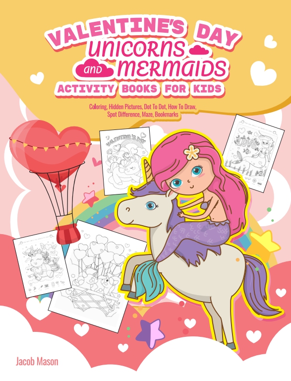 Valentine's Day Unicorns and Mermaids Activity Books For Kids full version