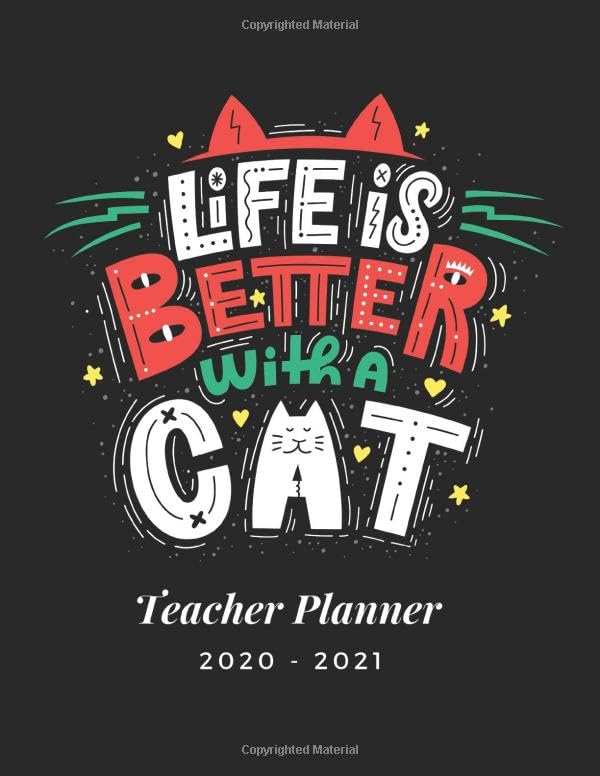 Teacher Planner 2020-2021: Life is Better With Cat Lettering Teacher Agenda for Organization - Planning Monthly &Weekly Academic year Lesson Plan and Record Book (Jan 2020 – Dec 2021) full version