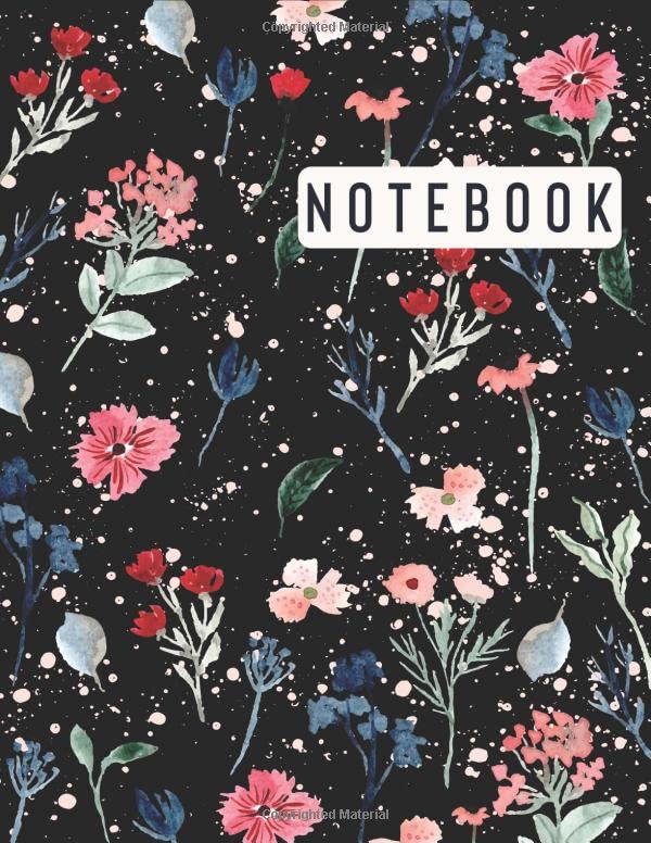 Flower Notebook: Cute Colorful Flowers College Ruled Lined Journal , Black Onyx, Lined, Soft Cover, Notebook Large Composition Book full version