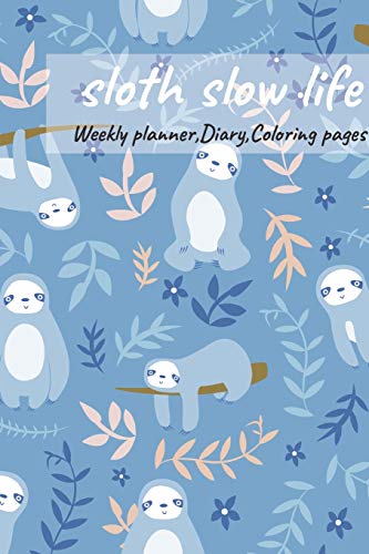 Sloth slow life, Weekly planner,Diary,Coloring pages: Journal for sloth lovers, wild animals,cute,lazy,relax notebook,sloth theme,mandalas coloring pages.Mom and baby sloth,No.4 full version