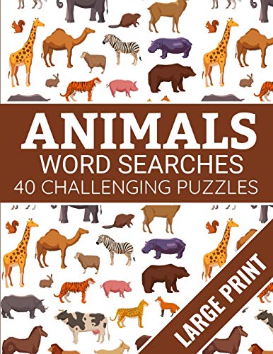 Animals Word Searches: 40 Large Print Challenging Animals Themed Puzzles | Gift for Summer & Vacations for Animals Lovers full version