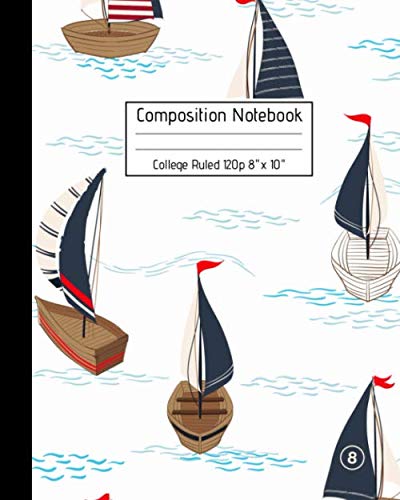 Composition Notebook College Ruled 120p 8" x 10": Nautical Journal | Little Sailor Notebook for Boys Girls Kids & Pirates School Notes. Sailing Boat Themed full version