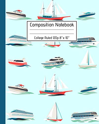 Composition Notebook College Ruled 120p 8" x 10": Nautical Journal | Sailboats Notebook for Boys Girls Kids & Little Pirates School Notes. Sailing Boats Themed full version