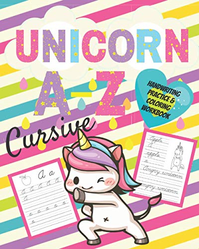 Unicorn A~Z Cursive Handwriting Practice & Coloring Workbook: Trace the cursive letters A~Z Trace the Vocabulary Words Color in the Unicorn Pictures full version