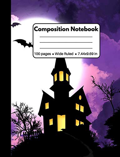 Composition Notebook: Halloween Gifts: Awesome Purple Castle and Bats Wide Ruled School Home Office Teacher Student 100 Pages full version