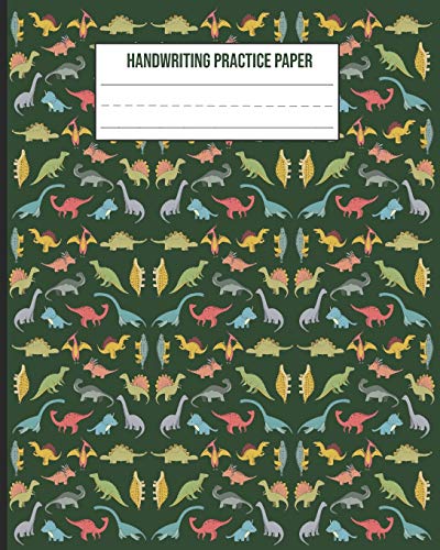 Handwriting Practice Paper: Small Dinosaurs Pattern School Exercise Notebook With Dotted Midline full version
