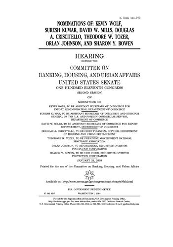Nominations of Kevin Wolf, Suresh Kumar, David W. Mills, Douglas A. Criscitello, Theodore W. Tozer, Orlan Johnson, and Sharon Y. Bowen full version