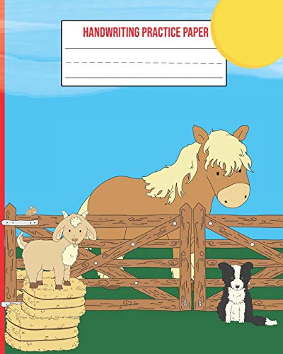 Handwriting Practice Paper: Farm Animal School Exercise Notebook With Dotted Midline full version