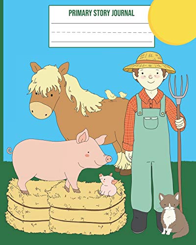 Primary Story Journal: Farmer and Farm Animals School Exercise Notebook With Dotted Midline full version