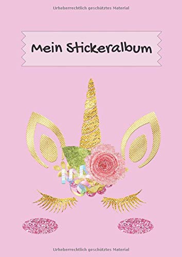 Stickeralbum: DIN A4 Format mit 40 Seiten für Mädchen und Jungen | Kein Silikonpapier zum abziehen | Motiv: Einhorn auf Rosa pink (German Edition) full version