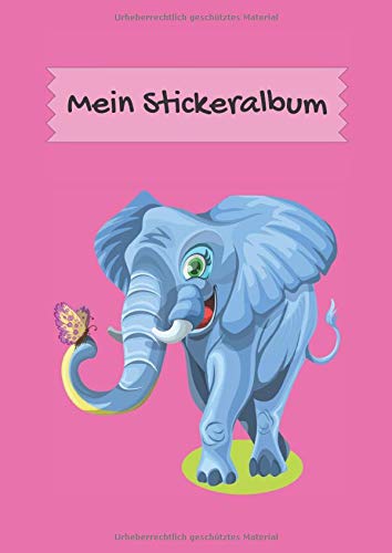 Mein Stickeralbum: DIN A4 Format mit 40 Seiten für Mädchen und Jungen | Kein Silikonpapier zum abziehen | Motiv: Elefant auf Pink (German Edition) full version
