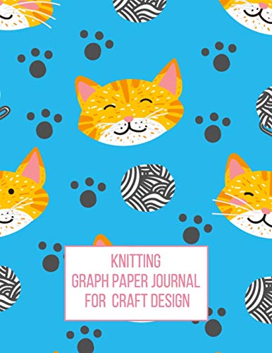 Knitting Graph Paper Journal for Craft Design: Gift for Knitters to Create Craft Projects 4:5 Ratio Cute Cats and Balls of Yarn on Blue Background full version