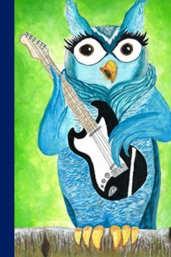 Owl with Electric Guitar Sketchbook: 100-page blank numbered sketch book with blue owl playing guitar full version