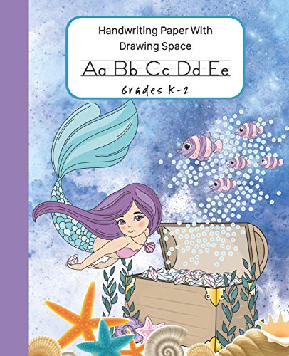 Mermaid Handwriting Paper With Drawing Space: Writing Practice Paper Dashed Midline Draw and Write Picture Story Box At Top Children K-2 full version
