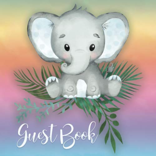 Guest Book: Baby Shower or Gender Reveal Guestbook Rainbow Watercolor Elephant Keepsake full version