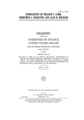 Nominations of William V. Corr, Demetrios J. Marantis, and Alan B. Krueger full version