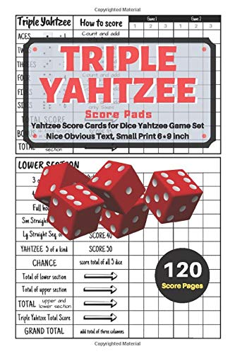 Triple yahtzee score pads: V.2 Yahtzee Score Cards for Dice Yahtzee Game Set Nice Obvious Text, Small Print 6*9 inch, 120 Score pages full version