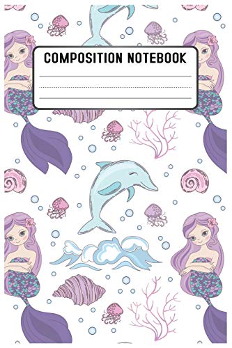 Composition notebook: Mermaid Pattern Pretty Wide Ruled Animal School Going Student Note Book - Cute Black & White Exercise Book and Journal For ... Notes. Lined 100 pages - Size 6’’x 9’’ full version