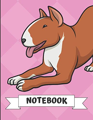 Notebook: Brown White Bull Terrier Dog Cartoon on a Pink Diamond Background. Book is Filled with Lined Journal Paper for Notes and Creating Writing. full version