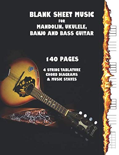 Blank Sheet Music For Mandolin, Ukulele, Banjo and Bass Guitar: Staves, Tabs and Chord Diagrams In Large Format 8.5" x 11" - 140 Blank Pages (4 string tabs and music) full version