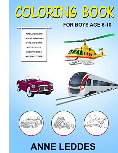 Coloring book for Boys: Cars, Trucks, Bikes, Planes, Boats, work Vehicles, Perfect Gift for Boys age 6-10 full version