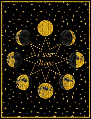 Lunar Magic: Moon Phases Notebook With Decorated Numbered Blank Pages Large Size For Writing And Journaling Gold Stars Black Wicca Design Cover full version