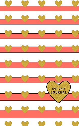 Dot Grid Journal: Small Size 5 x 8 Dot Grid 110 Pages Daily Tracker Personal Notebook Big Heart White Stripes With Coral Color full version