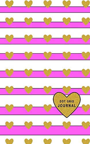 Dot Grid Journal: Small Size 5 x 8 Dot Grid 110 Pages Daily Tracker Personal Notebook Big Heart White Stripes With Hot Pink Color full version