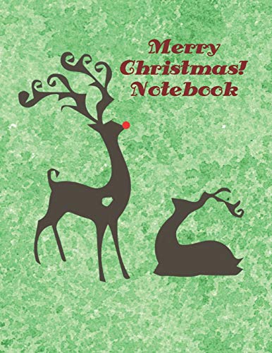 Merry Christmas Notebook: Green Watercolor with Reindeer - Wide Ruled - Legal Ruled Paper, Lined Journal, Large Size to Meet Your Needs full version