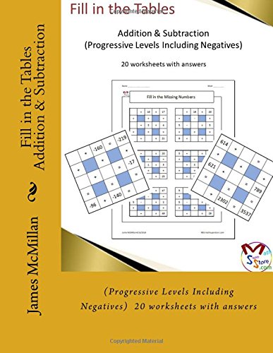 Fill in the Tables Addition & Subtraction: (Progressive Levels Including Negatives) 20 worksheets with answers full version