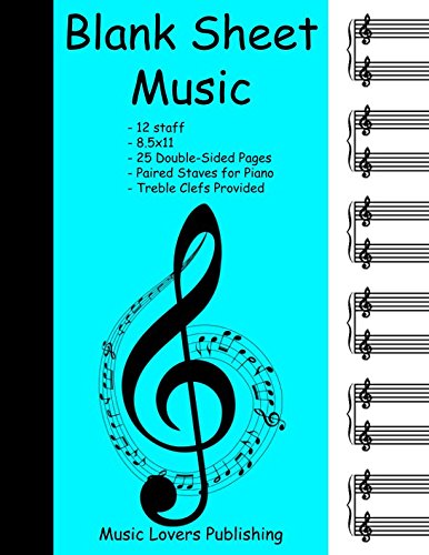 Blank Sheet Music: 12 Staves, Piano with Treble Clefs, Double-Sided Paper, 50 Pages Long full version