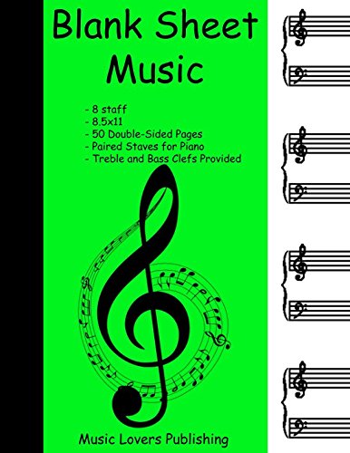 Blank Sheet Music: 8 Staves, Piano with Treble and Bass Clefs, Double-Sided Paper, 100 Pages Long full version