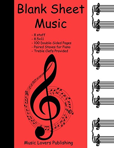 Blank Sheet Music: 8 Staves, Piano with Treble Clefs, Double-Sided Paper, 200 Pages Long full version