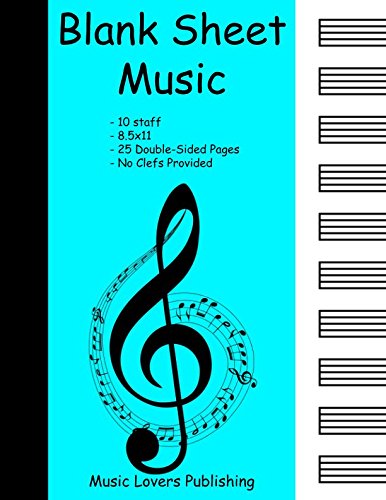 Blank Sheet Music: 10 Staves, Blank Staves with No Clefs, Double-Sided Paper, 50 Pages Long full version