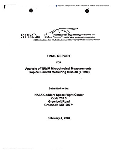Analysis of Trmm Microphysical Measurements: Tropical Rainfall Measuring Mission (Trmm) full version