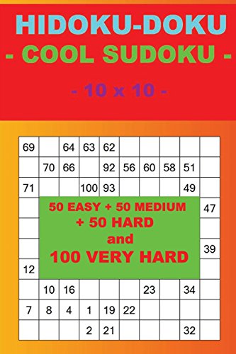 HIDOKU-DOKU - COOL SUDOKU - 10 x 10 -: 50 EASY + 50 MEDIUM + 50 HARD and 100 VERY HARD. This is the perfect book for you. (PITSTOP Doku) full version