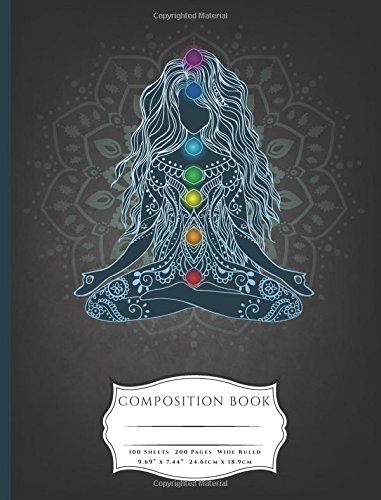 Meditating Lotus Asana Seven Chakras Composition Book: Wide Ruled Lined 100 Pages Book (7.44 x 9.69) full version