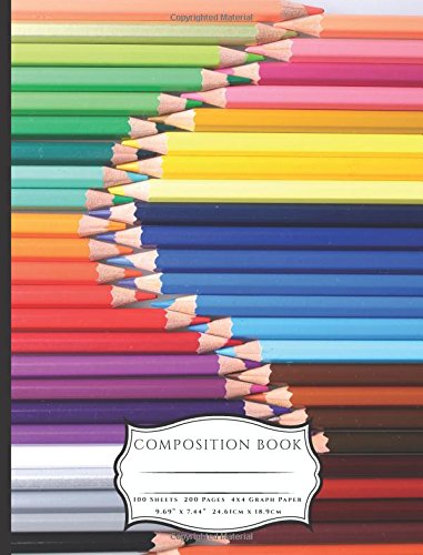 Colored Pencils Composition Book: 4x4 Graph Paper 200 Pages (100 Sheets) Book (7.44 x 9.69) full version