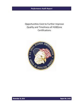 Opportunities Exist to Further Improve Quality and Timeliness of Hubzone Certifications. full version