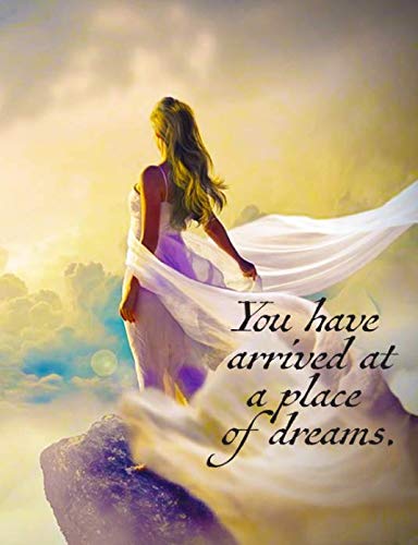 You have arrived at a place of dreams. Composition / Journal/ Inspirational Blank Notebook: Spirit woman and cloud city. 7.44" x 9.69" full version