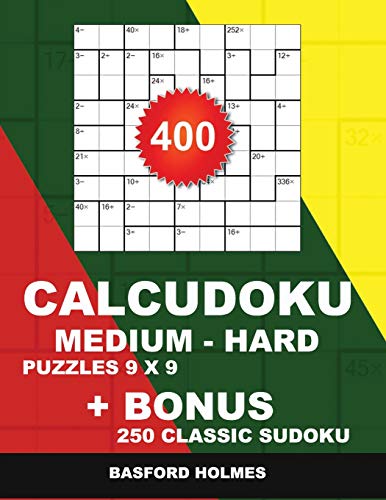 400 CalcuDoku MEDIUM - HARD puzzles 9 x 9 + BONUS 250 classic sudoku: Sudoku medium - hard puzzles and classic Sudoku 9x9 very hard levels (Calcudoku classic sudoku) full version