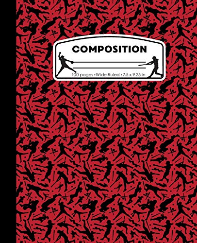 Composition: Softball Red and Black Marble Composition Notebook for Girls. Wide Ruled Baseball Book 7.5 x 9.25 in, 100 pages, journal for kids, elementary school students and teachers full version
