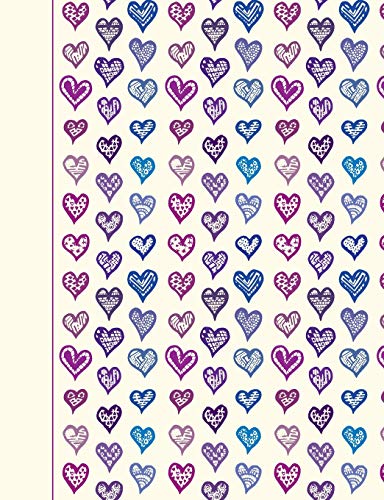 Composition Notebook: Purple and Blue Hearts, 140 pages / 70 sheets, College Ruled Lined Pages Book (7.44 x 9.69), white interior pages full version