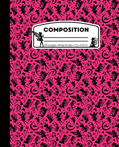 Composition: Fairy Magic Pink and Black Marble Composition Notebook for Girls. Fairies Wide Ruled Book 7.5 x 9.25 in, 100 pages, journal for kids, elementary school students and teachers full version