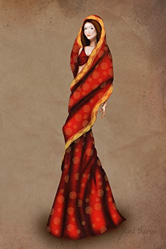 Red Saree: Vintage Style Fashion Illustration Soft Cover Journal, Diary, Notebook with Lined Pages full version