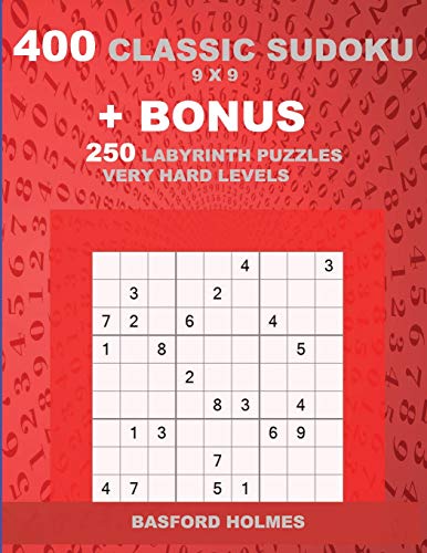 400 classic sudoku 9 x 9 + BONUS 250 Labyrinth puzzles very hard levels: Sudoku with EASY, MEDIUM, HARD, VERY HARD level puzzles and a Labyrinth 21 x 21 full version