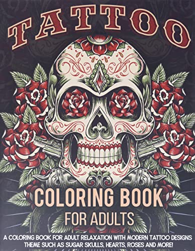 Tattoo Coloring Book For Adults: A Coloring Book For Adult Relaxation With Beautiful Modern Tattoo Designs Such As Sugar Skulls, Guns, Roses and More! full version