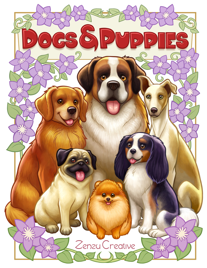 Dogs & Puppies: Adult Coloring Book full version