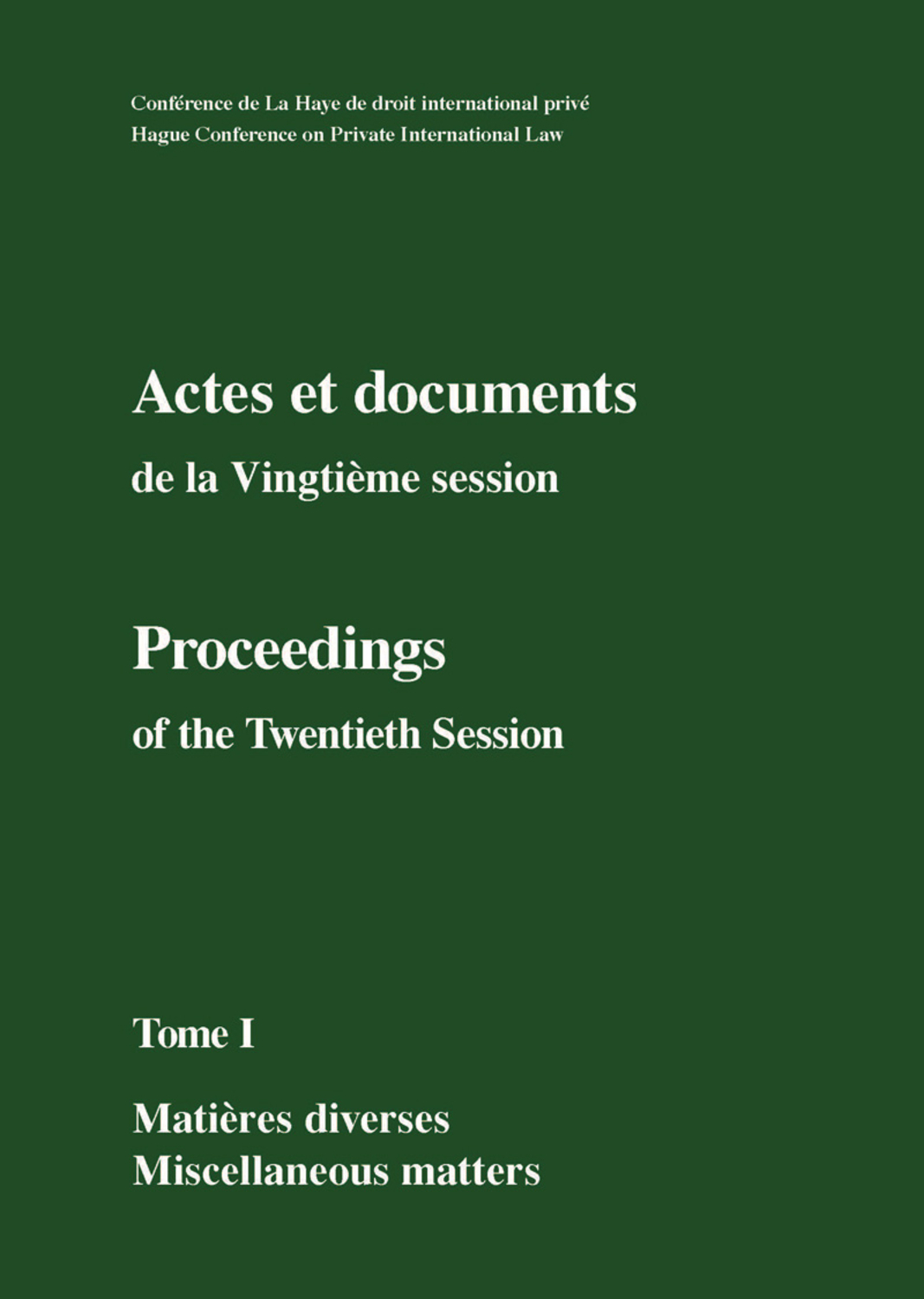 Actes et documents de la Vingtième session / Proceedings of the Twentieth Session: Complete set (3 vols.) (Proceedings of the Hague Conference on Private International Law) full version