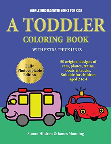 Simple Kindergarten Books for Kids: A toddler coloring book with extra thick lines: 50 original designs of cars, planes, trains, boats, and trucks (suitable for children aged 2 to 4) full version